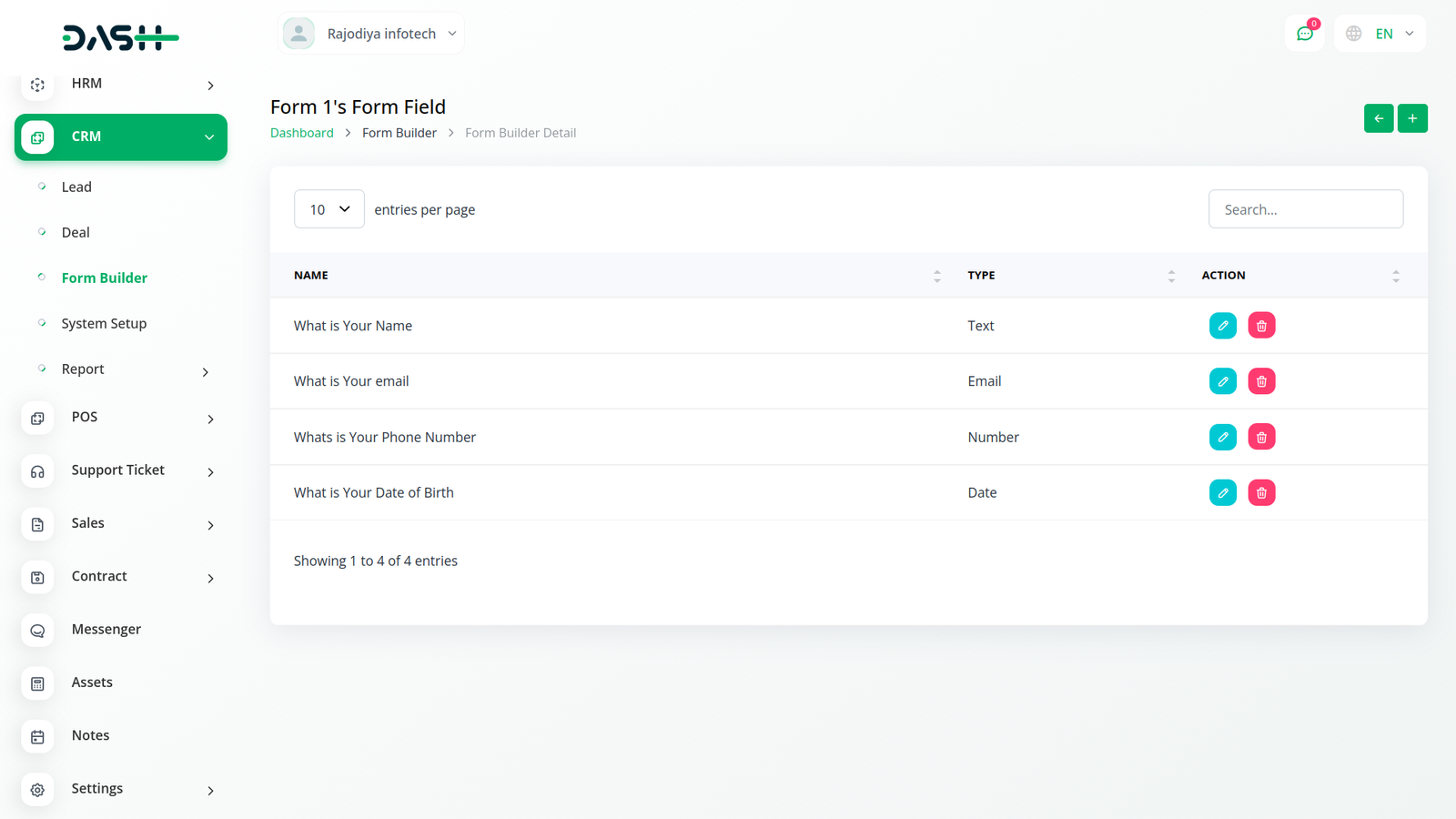 Within our platforms Actions section, youll find a range of functionalities tailored to streamline your workflow. Here, you can effortlessly copy the form link, access form field editing or viewing options, review responses, and seamlessly convert forms into leads or CRM entries. When transforming a form into a lead, all details are seamlessly transferred to the lead column. Conversely, converting it into CRM enables convenient form filling directly from the frontend. Additionally, you retain the flexibility to edit the form name to suit your preferences.