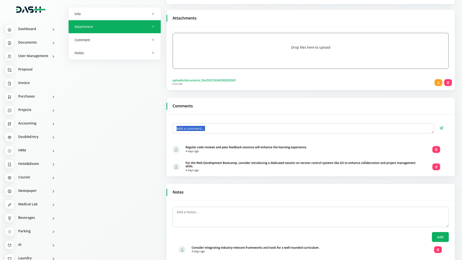 Effortlessly organize and access documents in one place with Dash SaaS's Documents Integration, allowing easy attachment, commenting, and note-taking for enhanced collaboration